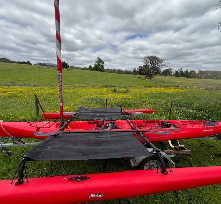 Explore our 2013 Tandem Island with many useful accessories This 2013 Hobie TI for sale can be viewed at Healesville, Victoria, Australia by appointment. Message me on my Facebook Marketplace listing.